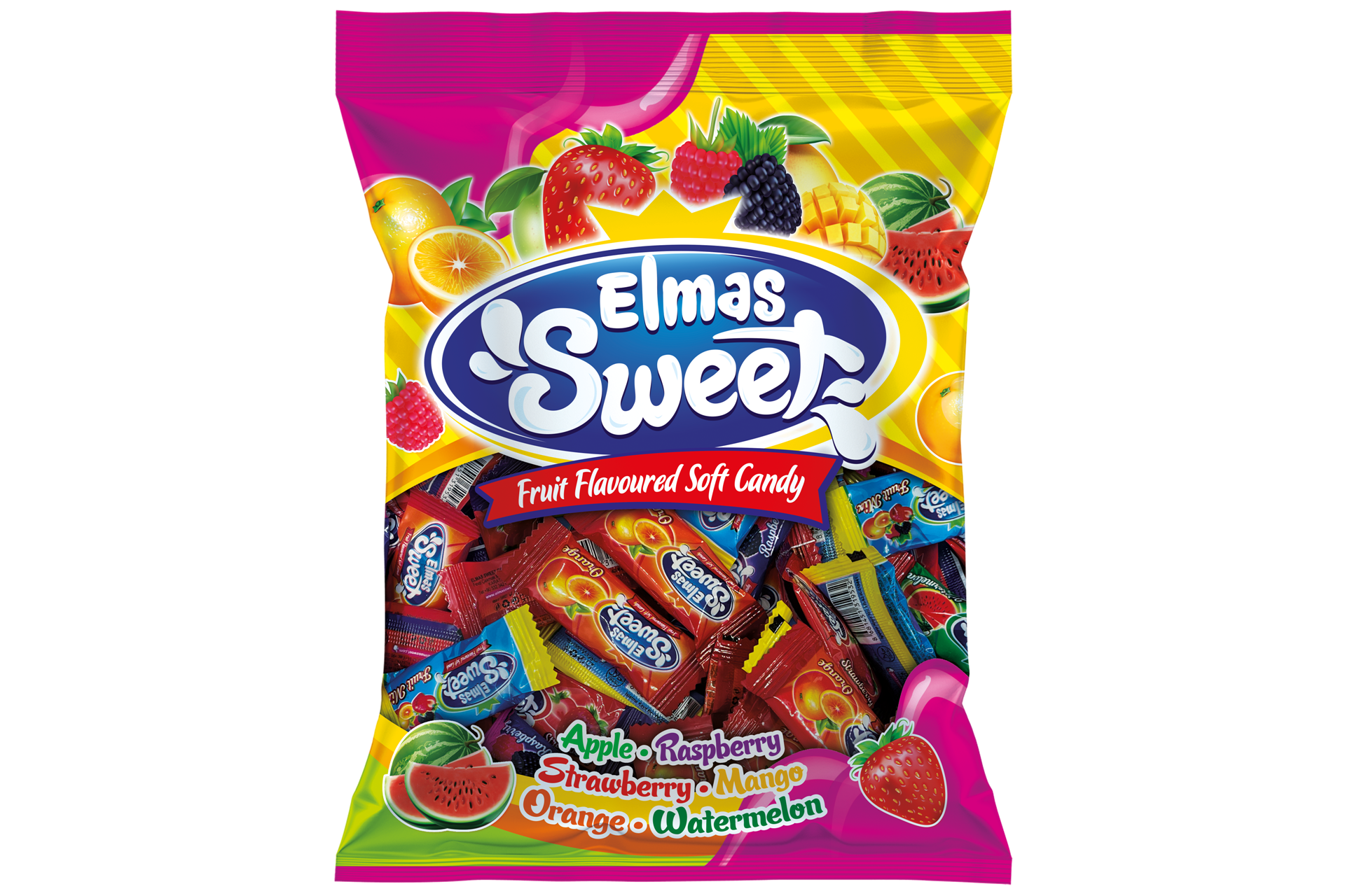 Canlı meyve aromalarıyla dolu, yumuşacık bir tatlı deneyimi! Elmas Sweet Fruit Flavoured Soft Candy, elma, çilek, mango, portakal, karpuz ve ahududu aromalarıyla hem çocukların hem de yetişkinlerin favorisi. Her bir parça, ferahlatıcı meyve lezzetini ve yüksek kaliteyi bir arada sunar.